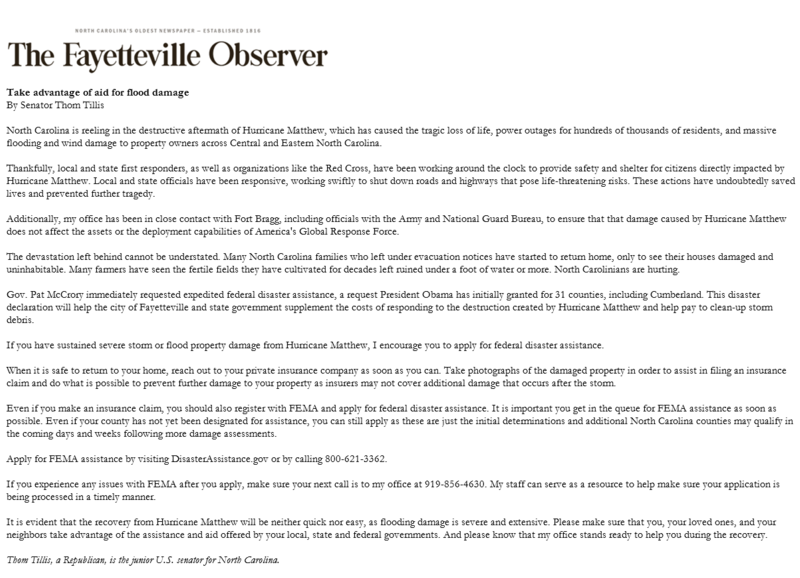 Thom Tillis: Recovering from Matthew